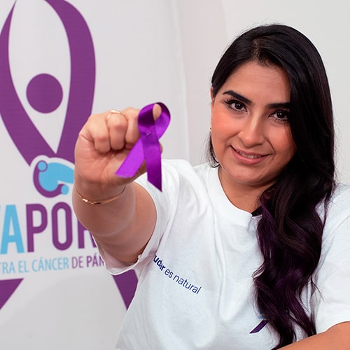 “Ponerse el listón morado” con nosotros es una forma simbólica de invitar a nuestra comunidad y el público en general a sumarse a pequeñas acciones cotidianas que pueden representar un cambio poderoso tanto para mejorar la salud y prevenir, como para fomentar la información acerca del cáncer pancreático. El morado, antaño destinado a la realeza fue acuñado por Pamela Acosta Marquadt en memoria de su madre, quien falleció víctima de la enfermedad, uniéndose a los aproximadamente 51,980 personas que trascienden al año por esta causa.